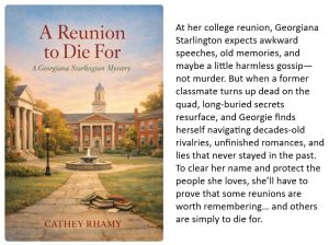 Retired librarian turned event planner Georgie Starlington expects seating charts and centerpieces — not suspects. Yet wherever her work takes her — from retirement communities to historic libraries, backyard barbecues to college reunions — secrets arrive uninvited. With her perceptive grandson Mason at her side, each new venue becomes a fresh mystery layered with sharp wit, heart, and just enough Southern charm to keep things interesting.